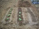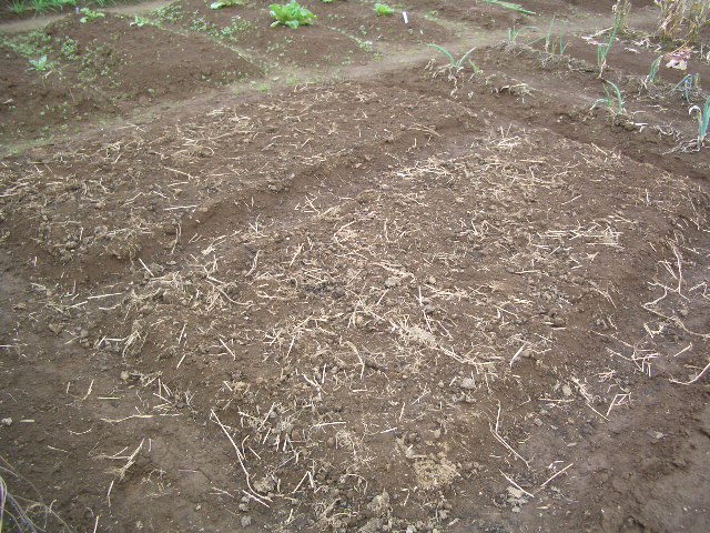 | この畑の中に47個のニンニクの球根が埋まっている |